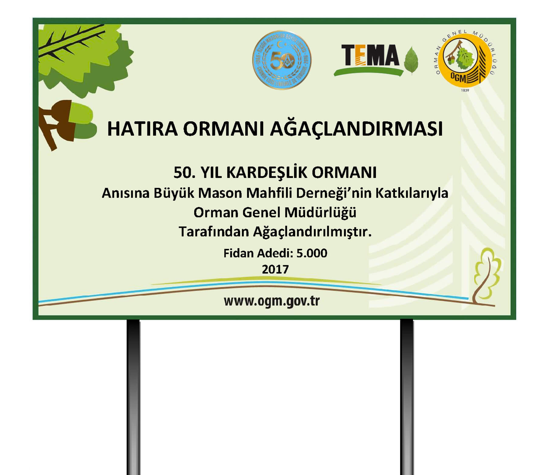 Özgür Masonlar Büyük Locası’nın 50. yılı şerefine yapılan kutlamaların bir parçası olarak, bütünüyle kardeşlerin katkılarıyla oluşturulan 50. Yıl Kardeşlik Ormanı Balıkesir Bölgesinde Tema Ormanı içindedir.
